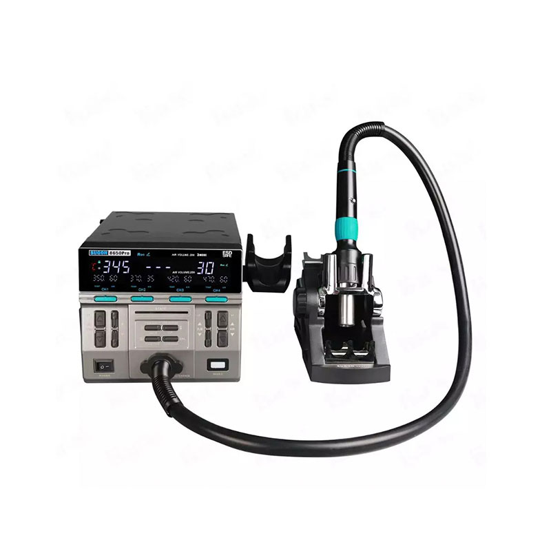 Saída de ar com nove bicos intercambiáveis para diferentes tipos de reparo.